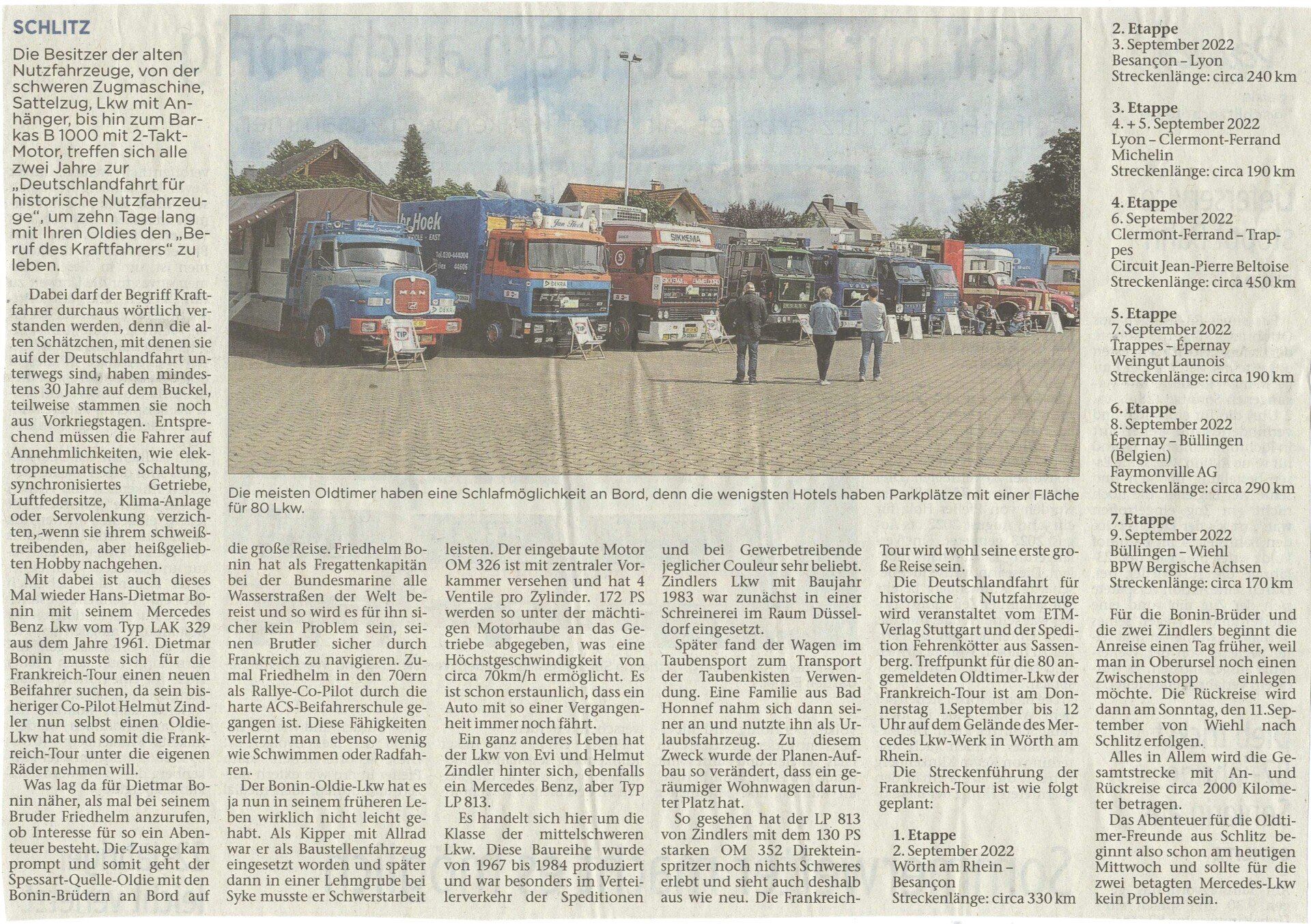 Die 19. Deutschlandfahrt für historische Nutzfahrzeuge vom 1. bis 9. September 2022