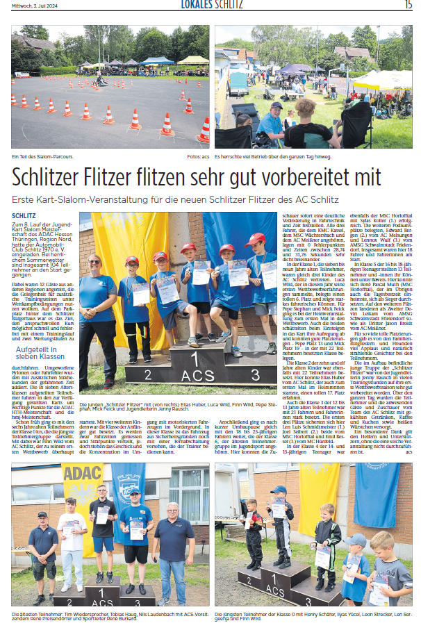 Herzlichen Dank an den ADAC Hessen-Thüringen für die Bereitstellung von Equipment, der Stadt Schlitz für die Genehmigung und den Anwohnern für ihr Verständnis. Anerkennung und Dank an unsere zahlreichen Helfer, Akteure und Mitglieder, die durch ihren bereitwilligen Einsatz in vielfältiger Weise zum Gelingen dieses Tages beigetragen haben. Der Vorstand
