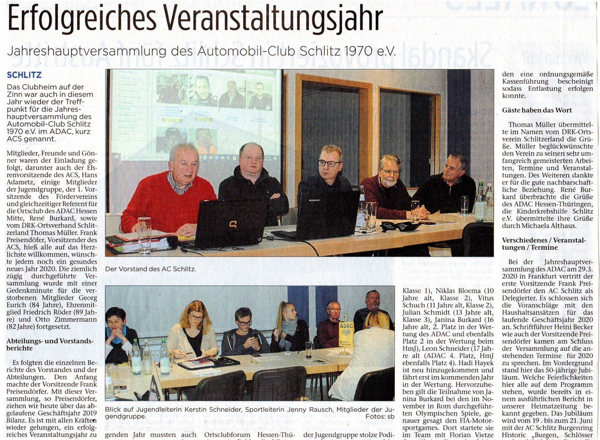 Vorsitzender bleibt René Preisendörfer, ebenso Schatzmeister Sebastian Bohmholt, stellv. Vorsitzender Jörg Metzendorf und Sportleiter Rene Burkard. Für das Protokoll bleibt weiterhin Jürgen Suppes zuständig und Jenny Rausch als Jugendleiterin. Im Amt des Verkehrsleiters rückt Mark Kemmler für den langjährigen Amtsinhaber Jürgen Braun in den Vorstand nach. Delegierter für die Jahreshauptversammlung des ADAC Hessen-Thüringen ist Vorsitzender René Preisendörfer, Vertretung erfolgt durch den 2. Vorsitzenden Jörg Metzendorf.